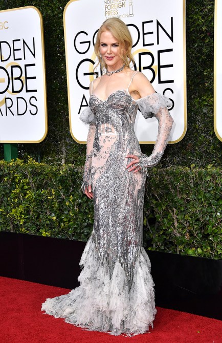 In a Versace gown and Tiffany and Co. jewelry