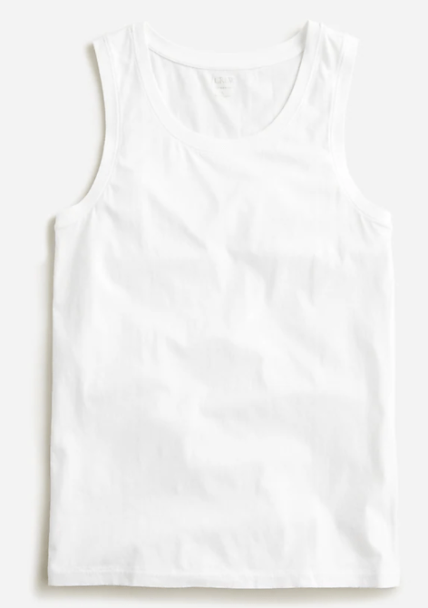 This look strikes a great balance between elevated and simple. The white tank and shorts are very casual but the leather accessories turn it into a true outfit. This would also work with a pair of Birkenstocks and a canvas tote bag.