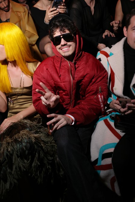 Lyas sits front row at the Dsquared2 show.