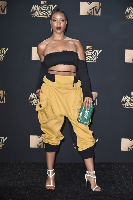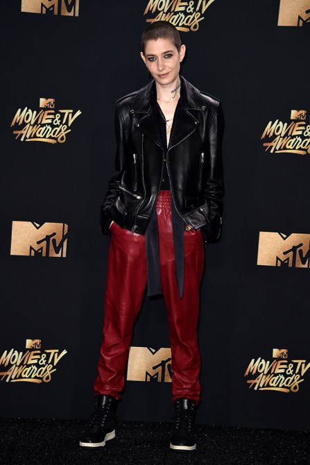 In a Baja East outfit, Stuart Weitzman shoes, and jewelry by Argento Vivo, Jacquie Aiche, and Gabriela Artigas.
