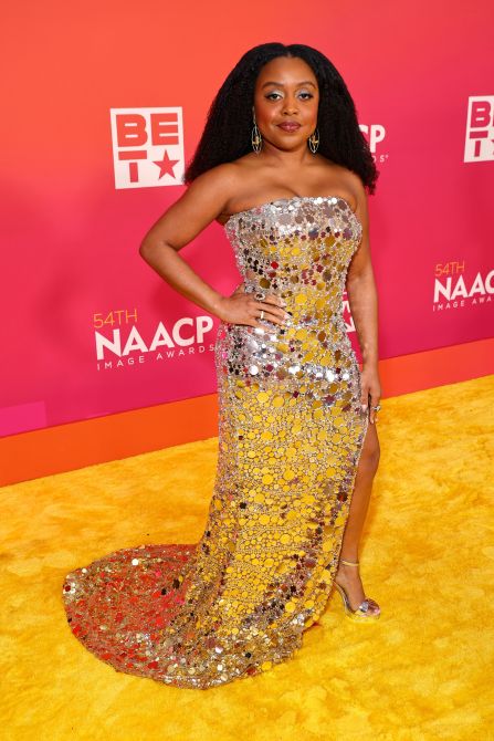 Quinta Brunson wears Naeem Khan.