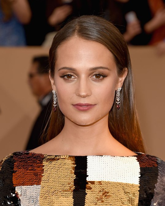 “Friggin’ luminous” is the only way we can describe Alicia Vikander‘s look, from the shimmery gold eyeshadow and dewy skin to her glossy, low maintenance-looking hair.