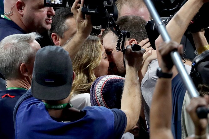 The New England Patriots have won five out of the eight Super Bowl games they’ve played with Brady, and the team’s quarterback has won Super Bowl MVP player four times—damn dude, way to go! What we’re wondering is why Gisele’s never been invited to toss the ball around … I mean, she’s been to enough games by now. She could probably give Brady a run for his money at this point, no? Maybe not. But we’re glad she attends and supports her husband in such an adorable way. Fans are being treated to images of the Super Couple, and as always, they are loving it.