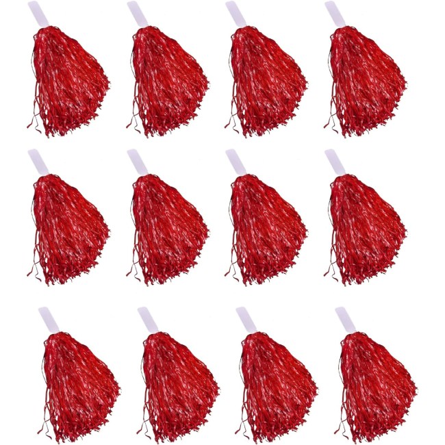 Cheer at every touchdown with this 12-pack of red pom poms.