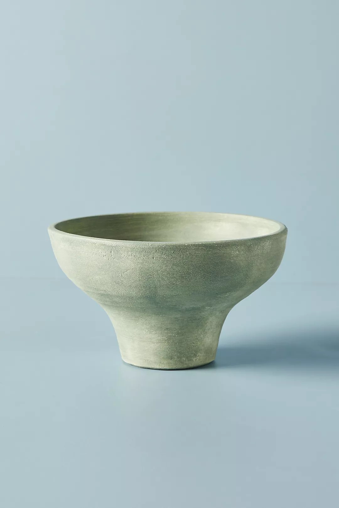 Fill this terracotta bowl with fruits on the kitchen counter or just leave it bare as a centerpiece on a coffee table or credenza and let it speak for itself. This is a lighter shade of sage green with little multi-tonal color striations. Love.