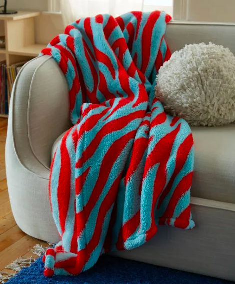 Did you inherit a neutral couch that you’re grateful for, but could use a quick spruce? Lay out this dopamine-boosting cozy AF blanket.
