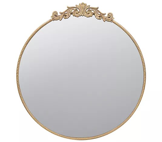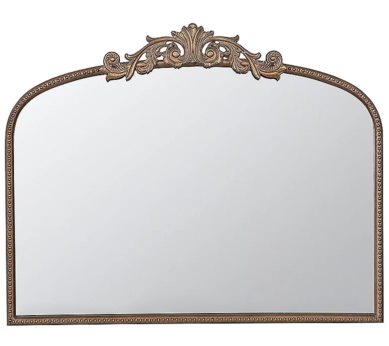 The Valerie Baroque-Inspired Mirror from QVC is a stunning spin on this viral mirror style. It features a modern arched silhouette with a baroque molding detail at the top for added interest and comes in a brassy gold or antique black finish. With the exception of the side details, the mirror is almost an exact replica of the three-foot Anthro version, it’s just a few inches shorter and a tad wider.