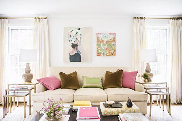 Aren’t ready for a complete pink overhaul? Pink throw pillows offer just the right amount of color, and feel fun and fresh on a living room couch.