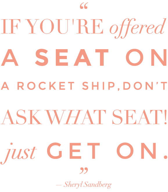 48. “If you’re offered a seat on a rocket ship, don’t ask what seat! Just get on.”— Sheryl Sandberg