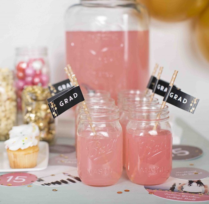 11. Serve refreshments in mason jars with adorable little grad flags as straws.