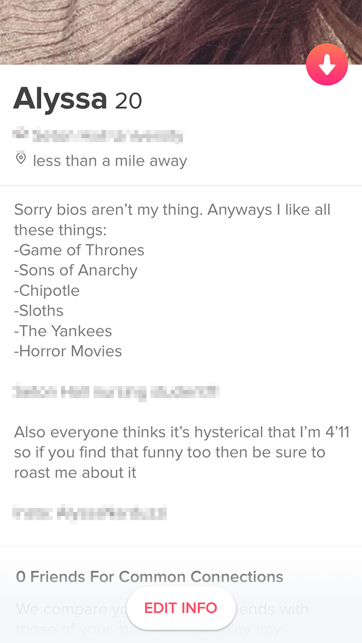 Oshima also notes that Sara’s bio is pretty general. It doesn’t illustrate anything specific about Sara’s personality or interests. “Focus on what makes you unique,” Oshima says. Remember: You’re one of many, so you want to stand out.