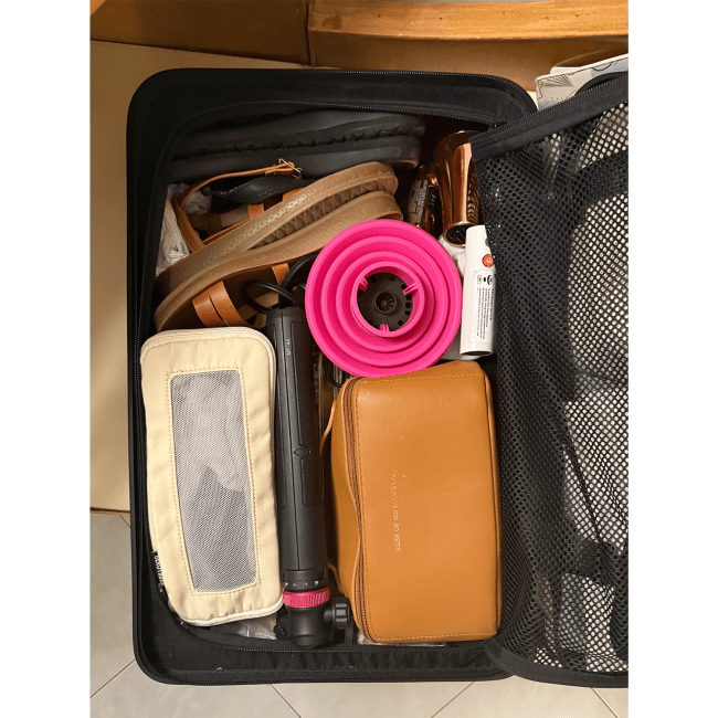 I also love that the Quince luggage features closures on both sides of the suitcase, with one offering similar compressive benefits of a packing cube and the other making it possible to put a barrier between all of the random trinkets I always end up with when traveling, so that they don’t spill out when it comes time to unpack everything. Because of these features, I was able to easily fit five jackets, seven pairs of pants, seven tops, two sweat outfits, my toiletry and makeup bag, and my husband’s clothing, too. And, on the way home, there was still some room left to wedge my souvenir finds so that I didn’t have to cart them in my carry-on.