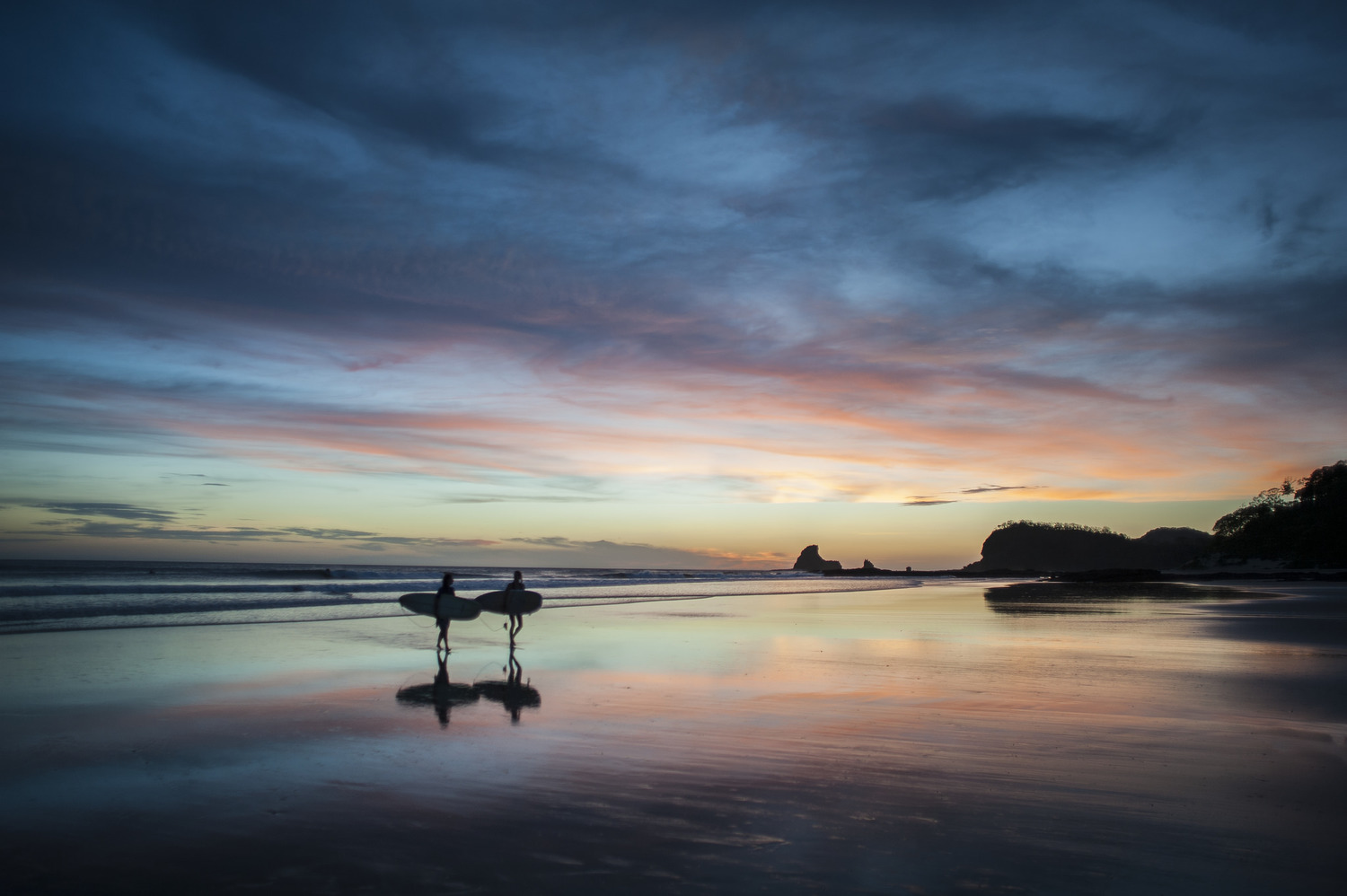 The main reason to head to Playa Maderas? The beach. With its signature shark-fin-shaped rock formations and protected jungle cove, it’s so gorgeous that it can be hard to tear yourself away. And the break is pretty fun too. Though it can get a little crowded, the beach has a friendly sand-rock bottom and a consistent swell that’s good for all levels.