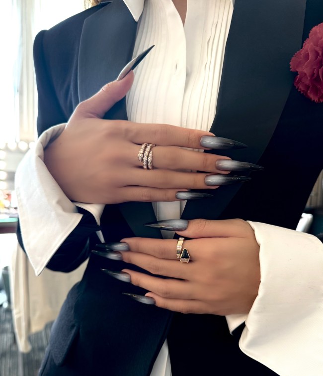 For Lisa’s first-ever Oscars appearance, she debuted a super on-trend set of airbrushed nails. Her nail artist Juan Alvear relied on contrasting colors and extra long stiletto extensions to pull the cool-girl look together. Paired with her super chic tuxedo dress, Lisa’s manicure was by far one of the most dramatic beauty moments of the night. (In the best way possible.)