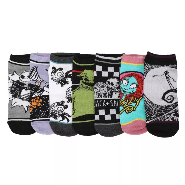 Images of Jack Skellington, Oogie Boogie, the Halloween town mayor, Sally, and Spiral Hill decorate the ankle socks in this 7-piece set. These Nightmare Before Christmas ankle socks are officially licensed and make a great gift for fans of the movie. Show some love for your favorite characters with these comfy and cozy ankle socks.