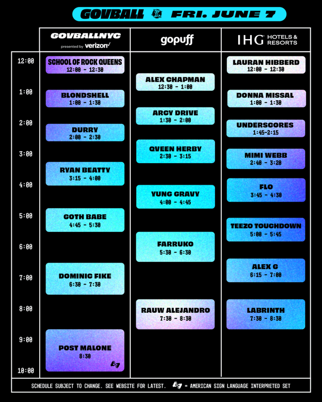 Friday, June 7 — GovBallNYC Stage