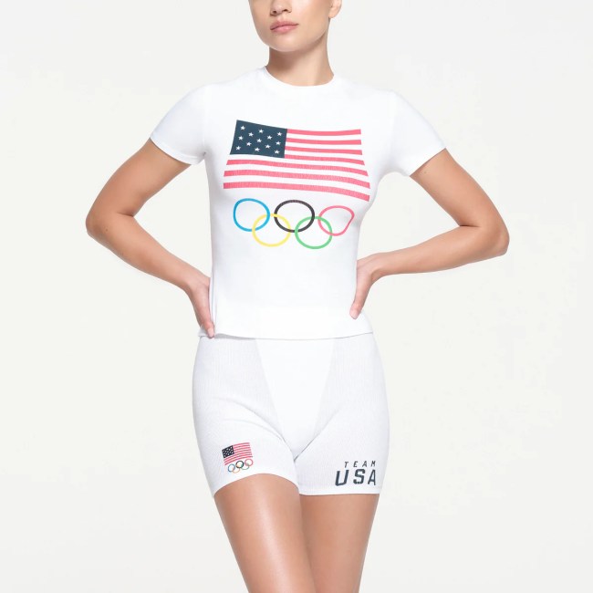 The SKIMS for Team USA line is one of the most buzz-worthy Olympics collections this year. It features lots of comfortable loungewear pieces (like the Cotton Rib Olympic T-Shirt Mini Dress and Terry Olympic Robe), some swimwear styles, and chic tops you can wear while supporting Team USA (this bodysuit is everything).