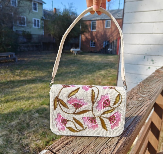 Handmade Himalaya White Beaded Clutch