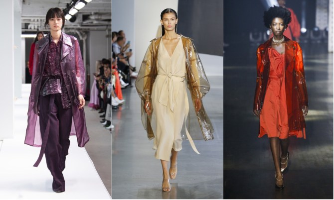 Last season, clear PVC jackets and accessories came out to play—and we were intrigued. But this season, when designers such as Sies Marjan (left), Sally LaPointe (center) and Adeam (right) graced the runways with colorful transparent pieces, our hearts leapt. Quick question: How many of these can I own before it’s a “problem”?