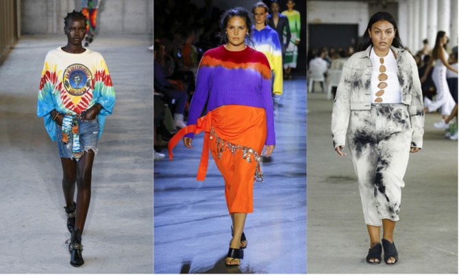 No need for a DIY tie-dye kit this spring—NYFW superstars like R13 (left) and Prabal Gurung (center) have already done the work for you. We’re obsessed with the tie-dye matching set from Eckhaus Latta (right) and plan on living in it next year.