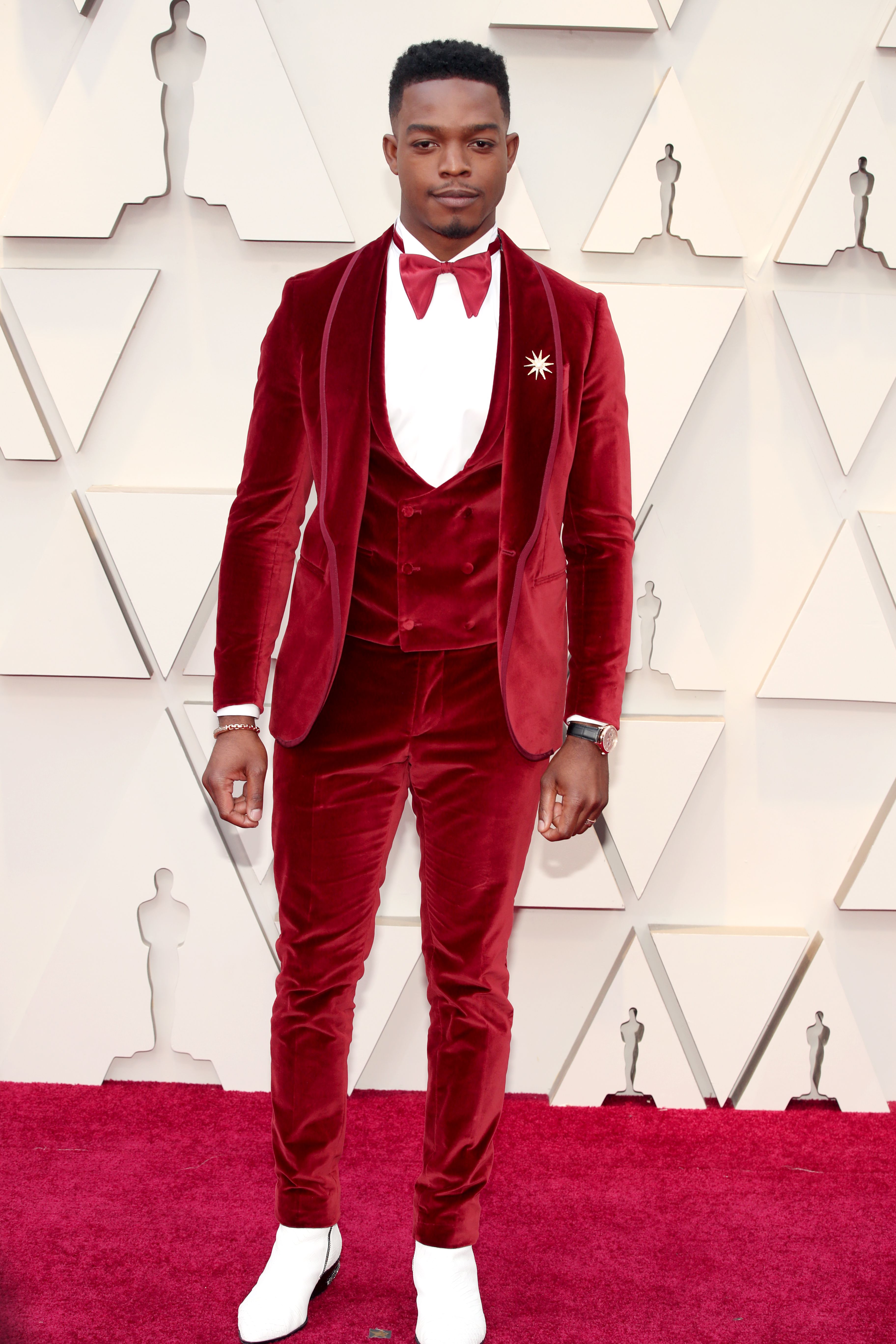 Stephen James wore a red velvet tuxedo—basically camouflage on the red carpet—to the 2019 Oscars, and we’re in love.