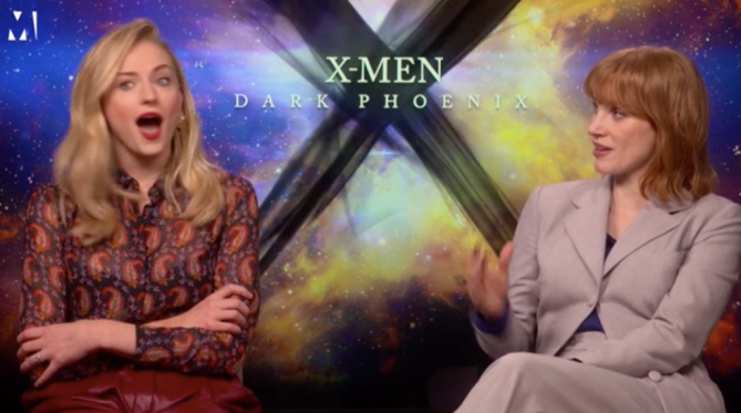 Dark Phoenix is coming, but we’re still talking about what happened on the Game of Thrones finale. Sophie Turner‘s Game of Thrones poster spoiler reaction is more magical then you could ever dream of. The Dark Phenoix star was doing press for the new X-Men flick when her co-star, Jessica Chastain, causally revealed that the Game of Thrones series finale was totally spoiled in a Season 1 poster for the show.