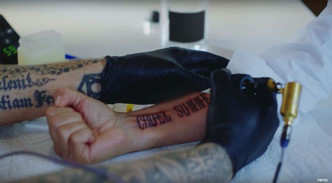 Yet another possible track name for Lover is probably going to be “Cruel Summer.” We’re not sure if it’s actually real, but we do know that Ellen DeGeneres already had the tat when Taylor appeared on her show several weeks ago. It was under our noses the entire time.