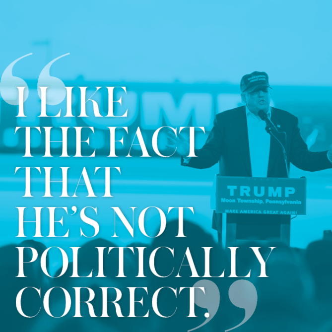 So we decided to ask some. Especially in the midst of polls showing Hillary Clinton beating Trump by a narrow margin with women (54% currently plan to vote for HRC), we felt the need to understand the mind-sets of ladies—especially young ones—who aren’t bothered by what many people consider to be Trump’s displays of egregious sexism and flagrant bigotry.
